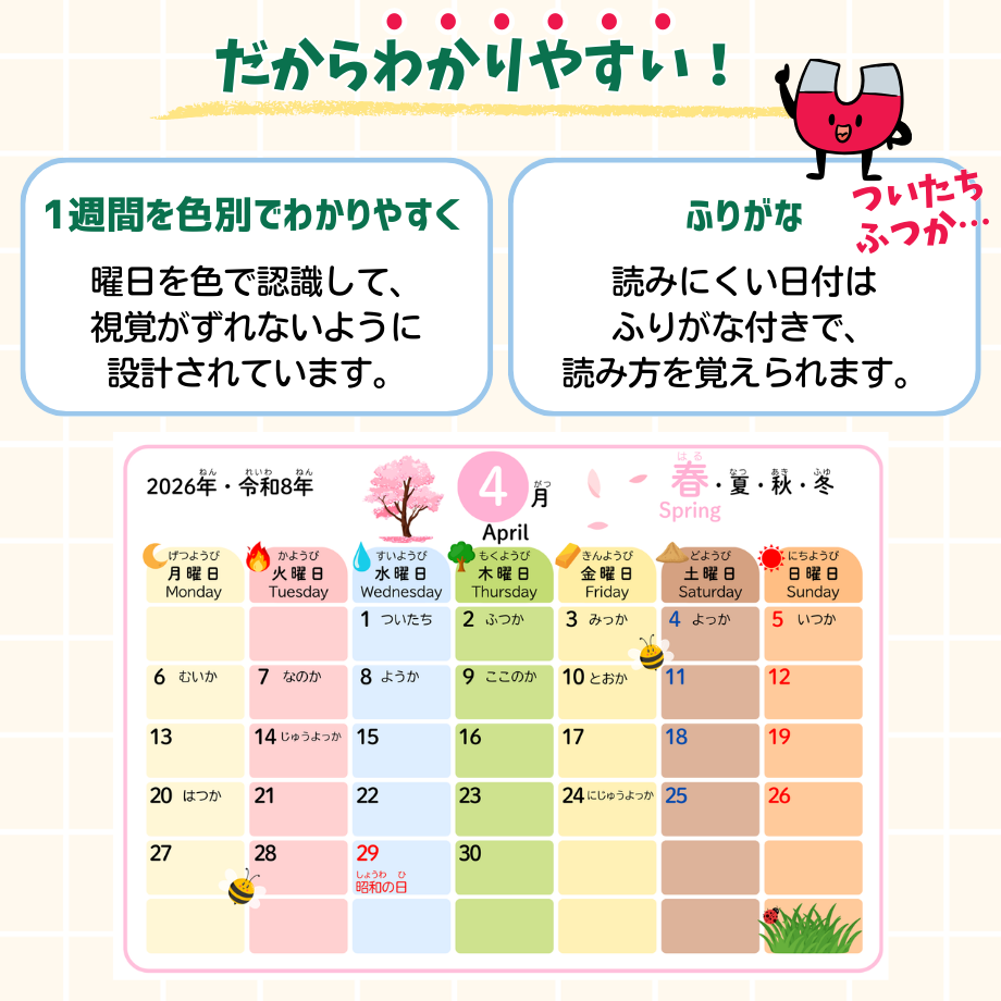 家庭でのカレンダー学習にぜひ活用してみてください。